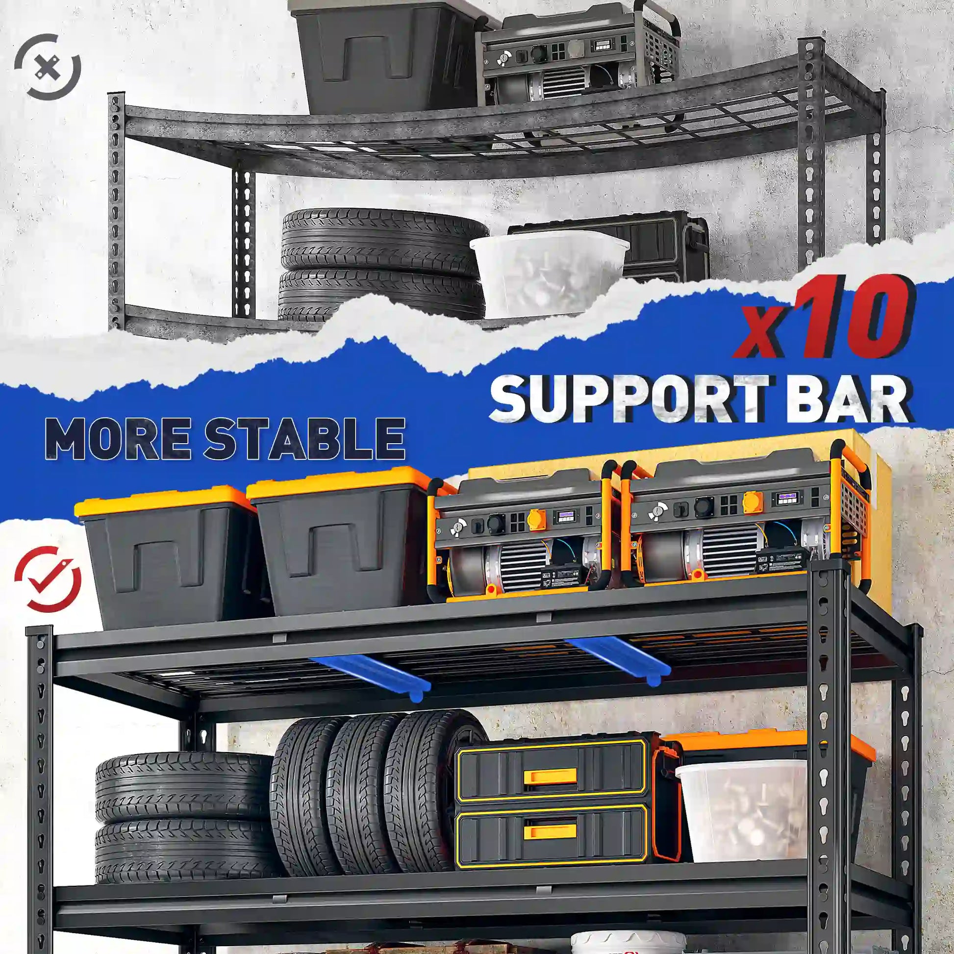 - To provide enhanced stability, this storage rack comes with 10 safety brackets (2 per shelf), effectively securing the shelves and preventing wobbling.