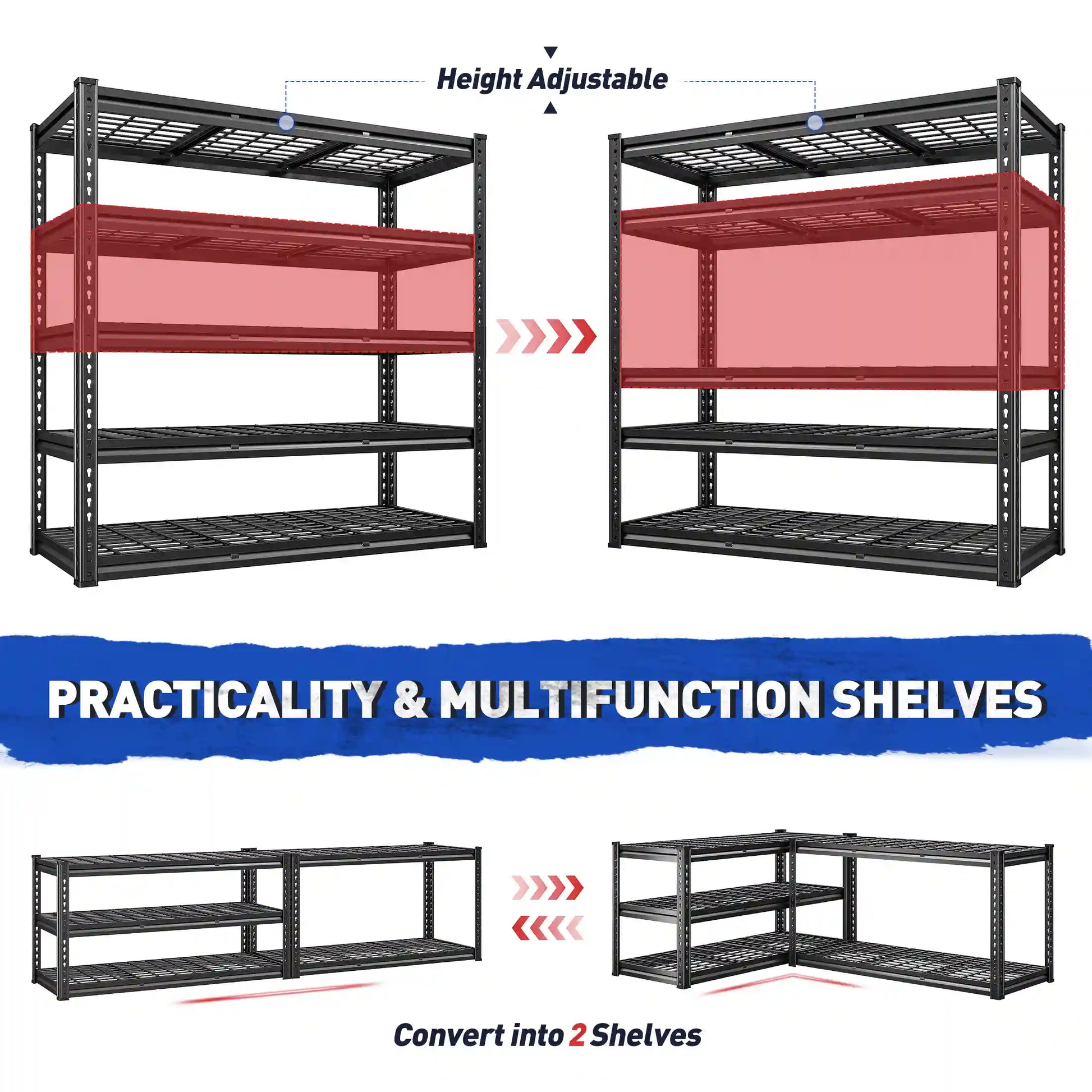- Perfect for garages, warehouses, or basements, this shelving unit delivers industrial-grade performance and peace of mind.