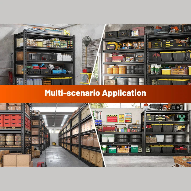 - Heavy-Duty Load Capacity: Thickened steel posts and anti-slip feet provide extra stability, ensuring the garage shelving units stay firmly in place, even under heavy loads,even weight distribution without bending.