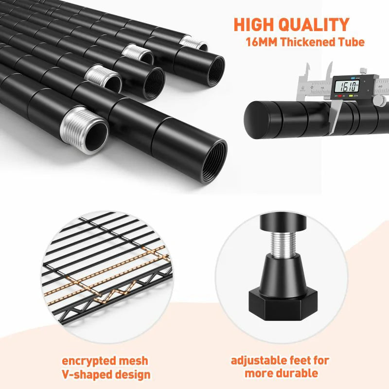 This 6-tier metal shelf provides easy storage access with its high-quality steel construction and lightweight design. Not only does it meet your space needs, but it also offers efficient and convenient storage options, enhancing the quality of life in any room. We provide prompt solutions within 24 hours, so please reach out if you encounter any issues during assembly.