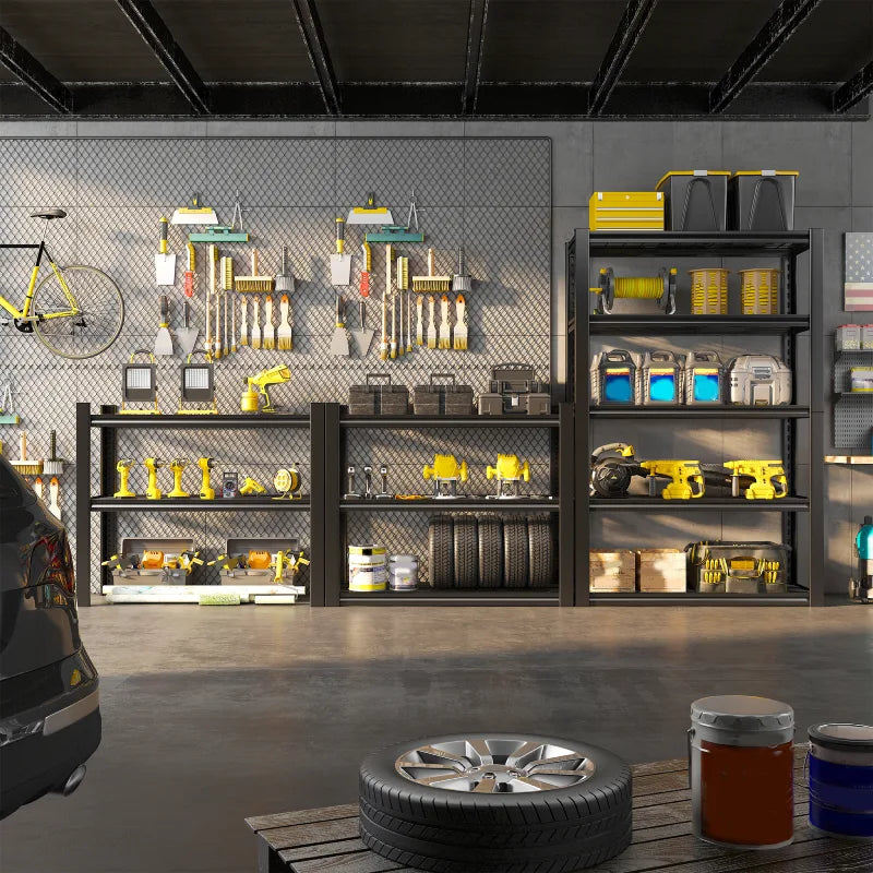 - Each workshop shelving can hold up to 500 pounds, utility shelving unit with a total weight capacity of 2500 pounds, providing you with a perfect storage experience. long-lasting stability — even when fully loaded with tools, storage bins, or heavy gear. Perfect workshop storage units!