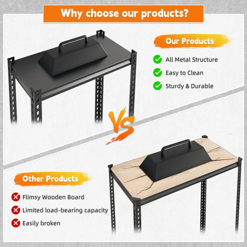 The adjustable metal steel shelving has a large size and enough storage space to help you organize heavy items.