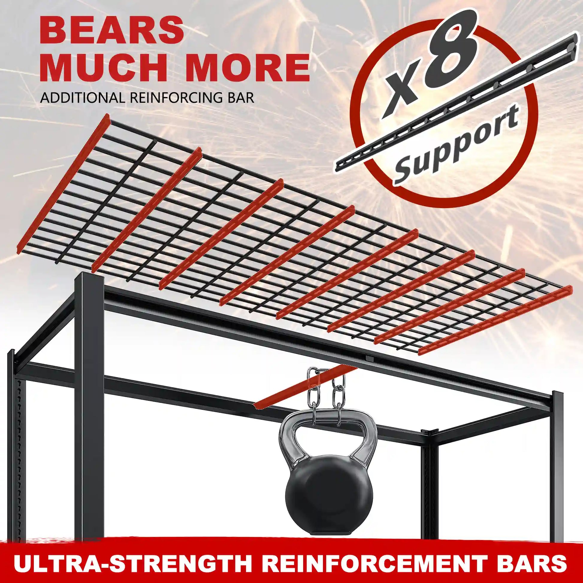 Reinforced with 8 Support Bars per Tier – Each shelf layer is fortified with 8 crossbars for exceptional load-bearing capacity and structural stability. Prevents sagging and deformation, even under heavy loads, ensuring long-term durability and safety