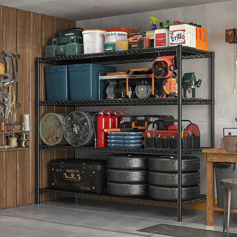 - Thanks to its sturdy build, adjustable design, and mobility, these steel shelves adapts to any scenario: store tools and equipment in the garage, food in the pantry, bins in the basement, or display goods in your business. Make every space organized and clutter-free with your ultimate storage solution!