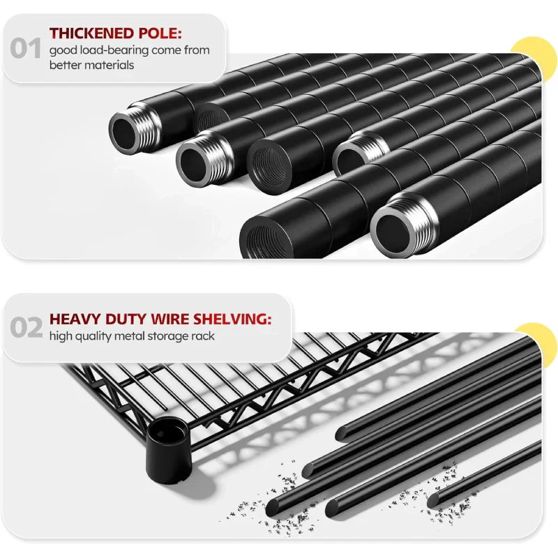 - Versatile Usage: Whether it’s for your kitchen, garage, warehouse, or storage room at home — or commercial spots like trade shows, supermarkets, or hotels — this freestanding shelves delivers top-notch storage performance and keeps everything perfectly organized.